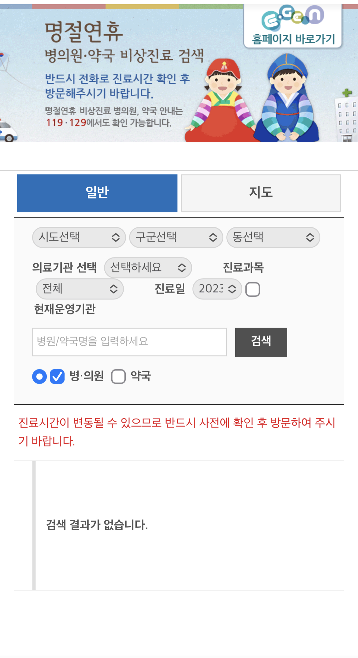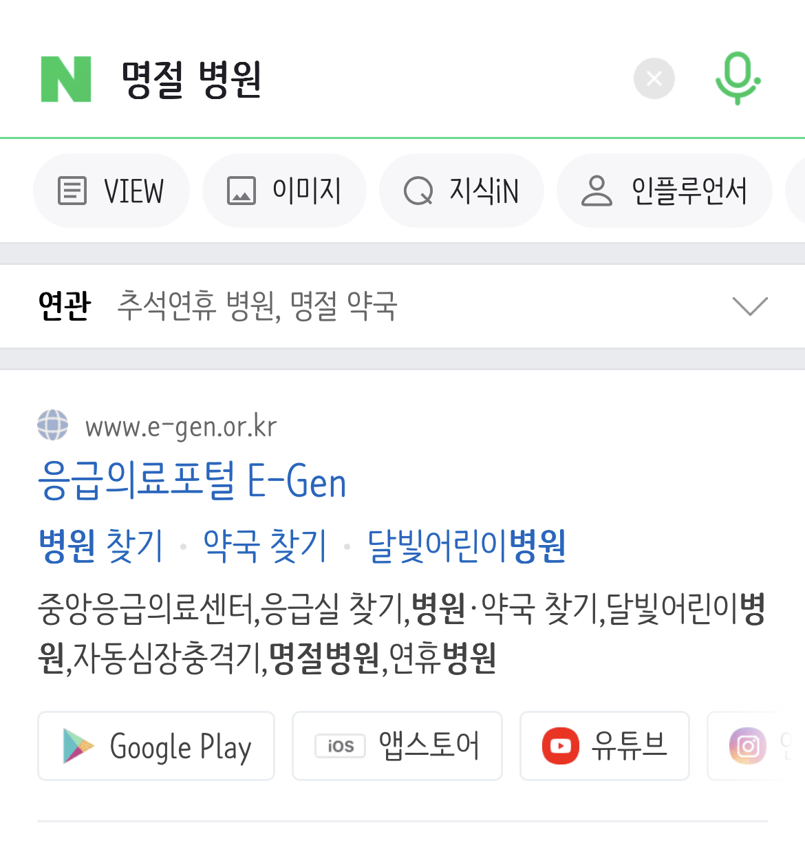 바로 상단에 응급의료포털 사이트가 뜹니다